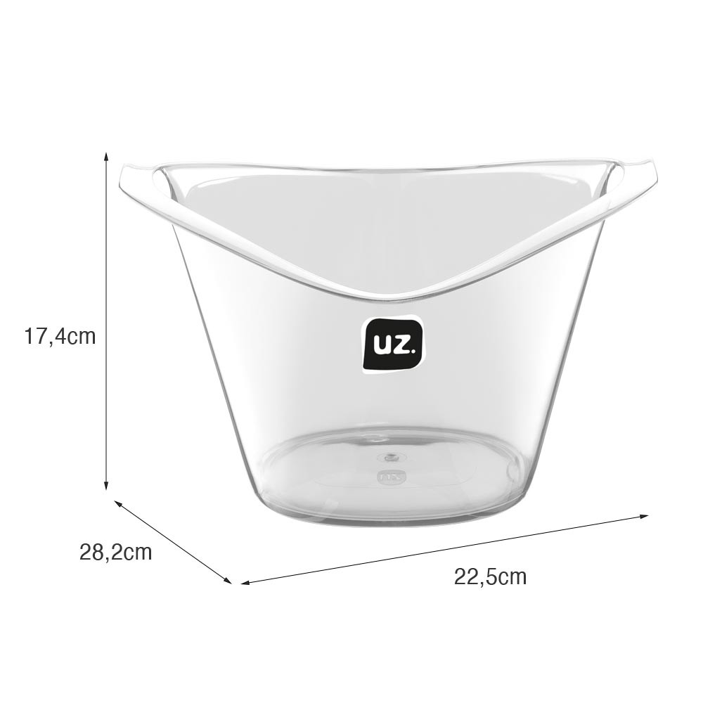 Seja para aquele jantar mais romântico ou um Happy Hour com os amigos no final de tarde, o Balde de Gelo Gold 3l UZ é perfeito para armazenar diversas bebidas, como: água, cerveja, espumante, vinho, energético, entre outros. Feito de poliestireno (ps) cristal e pigmentos de coloração translúcida, está disponível em diversas cores (veja abaixo). Com um design robusto, é uma ótima opção para os seus eventos e demais ocasiões. Além de ser fácil de transportar, também é simples de manusear, lavar e secar.