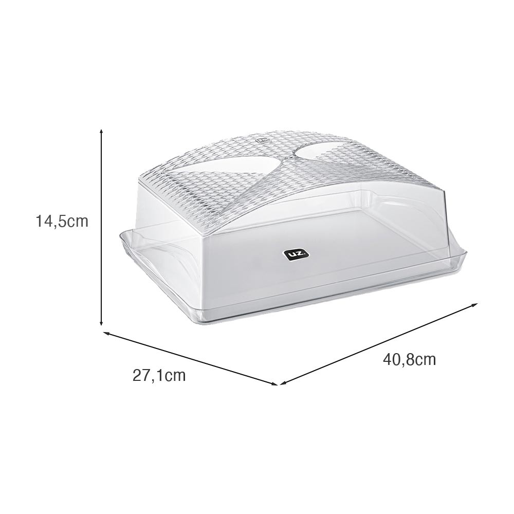 A Boleira Retangular Premium UZ é perfeita para armazenar e servir bolos e tortas com mais praticidade e elegância. Com design moderno e sofisticado, mantém seus alimentos protegidos e valoriza a apresentação da mesa em qualquer ocasião. Sua tampa transparente facilita a visualização do conteúdo, tornando o dia a dia mais funcional.
