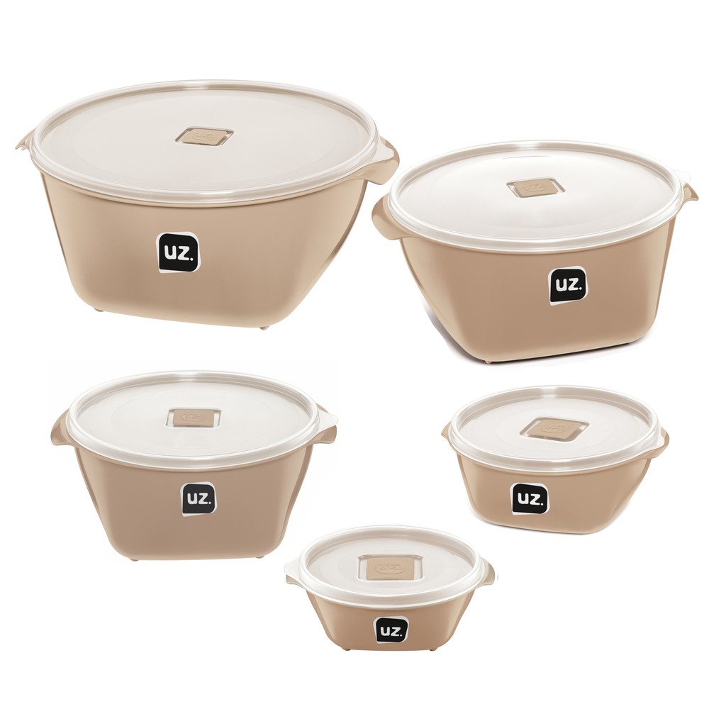Um item indispensável em toda casa, seja para organizar a despensa ou a geladeira, é o Kit Multiuso Premium 5 peças UZ1977 da UZ Utilidades. Com design versátil e moderno, são 5 tamanhos para facilitar a sua rotina, entre: 350ml, 800ml, 2l, 4l e 6l, permitindo organizar todos os tipos de alimento, do freezer até a geladeira ou micro-ondas. Produzidos em polipropileno (PP), o kit é na cor cappuccino, enquanto as tampas são transparentes, permitindo a visualização do conteúdo. Com acabamento brilho, são BPA Free, garantindo o máximo de segurança para armazenar alimentos, sejam quentes ou frios, além de poder ir ao freezer ou micro-ondas. Práticos e indispensáveis, nunca foi tão fácil organizar sua geladeira ou despensa como agora. E para um melhor armazenamento e mais durabilidade, ele permite ser empilhado, além de contar com ótima vedação, e a tampa, possui válvula de respiro, permitindo um fechamento homogêneo. Fácil de lavar e sevar, para mais durabilidade, durante a limpeza, evite produtos abrasivos que possam danificar o produto.