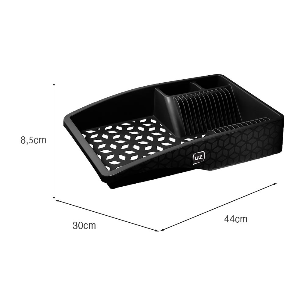 O Escorredor de Louças Slim UZ é perfeito para quem gosta de uma cozinha limpa e organizada. Com espaço para até 12 Pratos, dois compartimentos para escorrer os talheres e uma outra ampla divisória multiuso para copos, potes, tampas, xícaras e etc, ele é compacto e tem o tamanho perfeito para sua pia. Fabricado em polipropileno (pp) e pigmentos de coloração sólida, é um produto muito resistente, durável, de altíssima qualidade e que vai compor a sua cozinha por muito tempo. Com design moderno, ele é todo vazado, o que facilita o escoamento de toda água da louça e uma secagem mais rápida dos utensílios. Disponível em belas e diversas cores (confira abaixo), este escorredor alia beleza e praticidade, sendo um grande diferencial no seu dia a dia e equipando ainda melhor a sua cozinha.