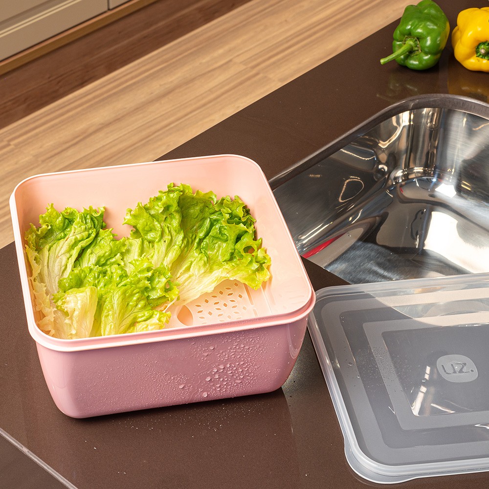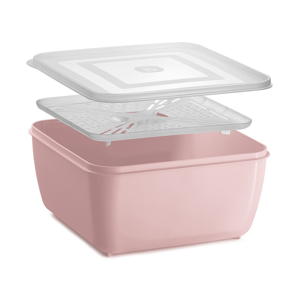 Quando o assunto é preparar uma salada deliciosa, a gente sabe a importância de uma boa limpeza. Por isso, conte com o Escorredor Multiuso 5l UZ406 da UZ Utilidades. Com um design inovador e inteligente, o escorredor é perfeito para o processo de lavagem de frutas, verduras, legumes e folhosos. Podendo ser utilizado desde a geladeira até o freezer ou microondas. BPA Free, ele garante o máximo de segurança na hora de armazenar alimentos, além de ser todo produzido em polipropileno (PP), material resistente e de alta durabilidade, esse será seu maior aliado na hora de preparar aquela salada deliciosa e servi-la à mesa. Com formato quadrado, a tampa é transparente, enquanto o pote é na cor rosa, e a grade interna permitirá que a água dos alimentos escorra, deixando-os perfeitos para o consumo. Com ótima vedação, ele é fácil de lavar e secar, e para mais durabilidade, durante a limpeza, evite produtos abrasivos que possam danificar o produto. * não utilizá-lo no microondas, retire a tampa.