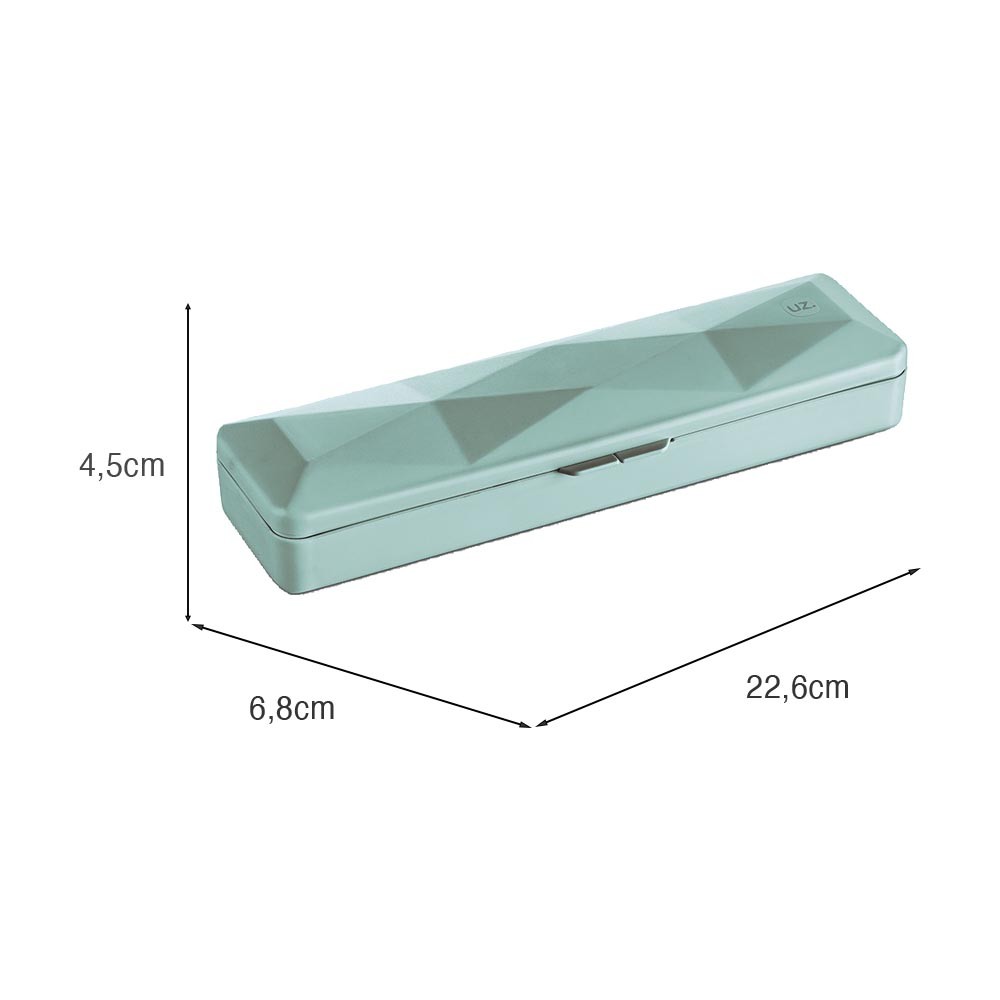 Disponível em diversas cores lindas (veja abaixo), o Estojo Multiúso UZ é perfeito para armazenar e organizar diversos objetos e acessórios, como: escova de dentes, creme dental, talheres, canetas, lápis, entre outros. Além disso, seu design compacto e inteligente permite que ele seja carregado dentro de bolsas, mochilas e malas. Projetado em polipropileno (pp) e pigmentos de coloração sólida, possui trava para manter os itens em segurança dentro dele. É fácil de manusear, abrir e fechar.