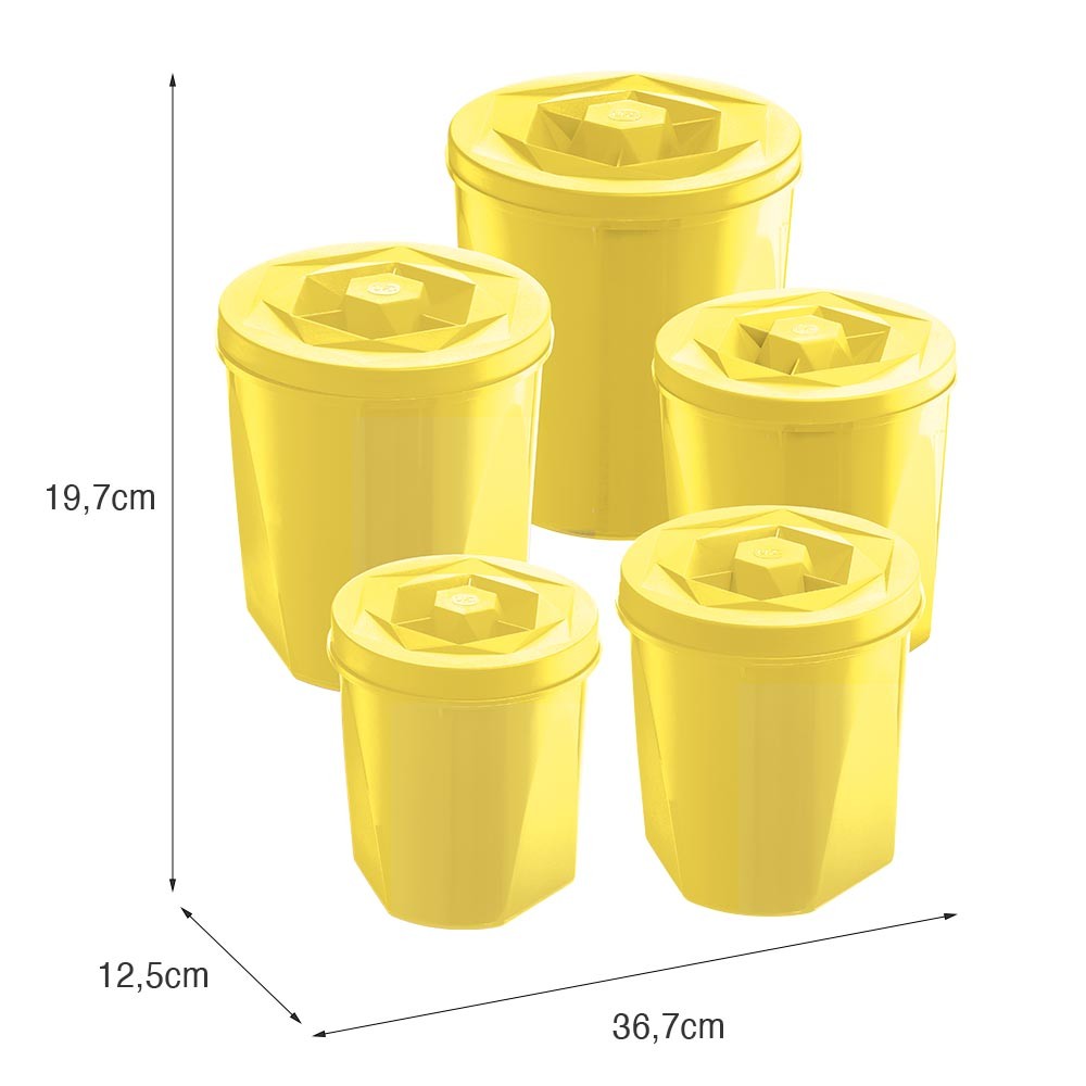 O Kit 5 Porta Mantimentos Color, da linha Color, é aquele conjunto que não pode faltar na sua casa. Com design moderno, é super prático e perfeito para armazenar qualquer tipo de alimento em grãos ou farináceos. Disponível em diversas outras cores (confira abaixo), cada pote tem medida única e tampa com alta vedação, garantindo mais proteção e conservação dos alimentos por muito mais tempo. Feito de polipropileno (pp), o kit é BPA Free, além de oferecer fácil manuseio e simples lavagem, pode compor com elegância a sua cozinha. Uma ótima alternativa para manter o seu lar organizado e ainda mais lindo