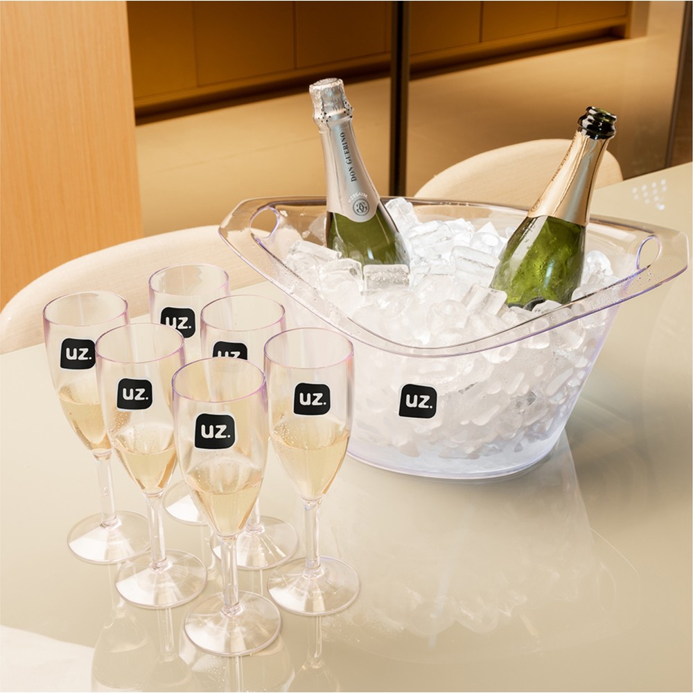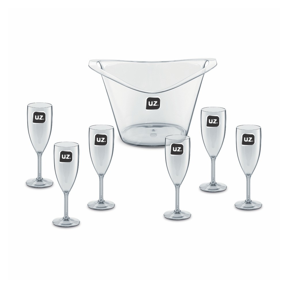 Para momentos especiais, em família ou com os amigos, o Kit Festa Gold 7 peças UZ1976 da UZ Utilidades é essencial. Moderno e prático, o kit é a opção perfeita para armazenar e servir todo tipo de bebida, desde espumantes, sucos, águas até aquela cerveja do final de semana. Com alças, o cooler é fácil de transportar, além de contar com um design lindo para servir à mesa. E as taças, com capacidade para 300ml, contam com um design elegante e prático para manusear, tornando cada momento ainda mais especial. Produzido em poliestireno (PS) transparente, o kit é resistente e durável, sendo BPA Free, garantindo o máximo de segurança. Fundamental em diversas situações, esse será seu novo melhor amigo nos momentos de comemoração. Fácil de lavar e secar, para mais durabilidade, durante a limpeza, evite produtos abrasivos que possam danificar o produto.
