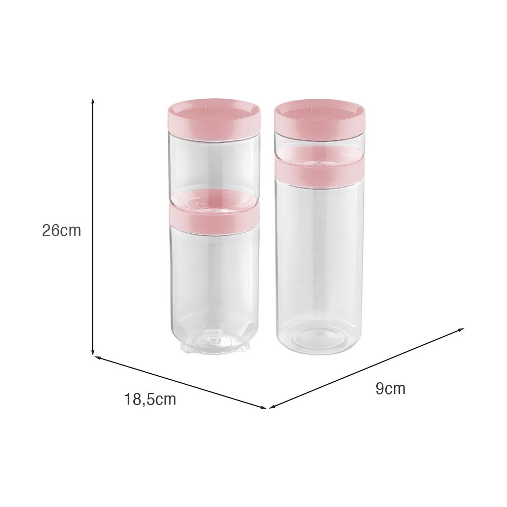 Seu grande diferencial é o sistema inteligente em que um frasco conecta-se ao outro, otimizando espaço e proporcionando um visual mais organizado e funcional. As tampas com alta vedação ajudam a conservar melhor os alimentos, protegendo contra umidade e impurezas.