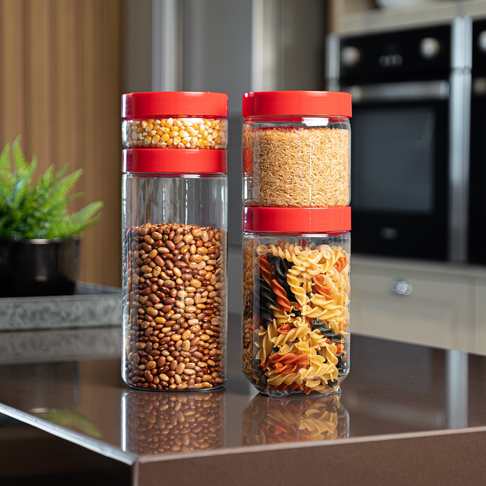 Seu grande diferencial é o sistema inteligente em que um frasco conecta-se ao outro, otimizando espaço e proporcionando um visual mais organizado e funcional. As tampas com alta vedação ajudam a conservar melhor os alimentos, protegendo contra umidade e impurezas.