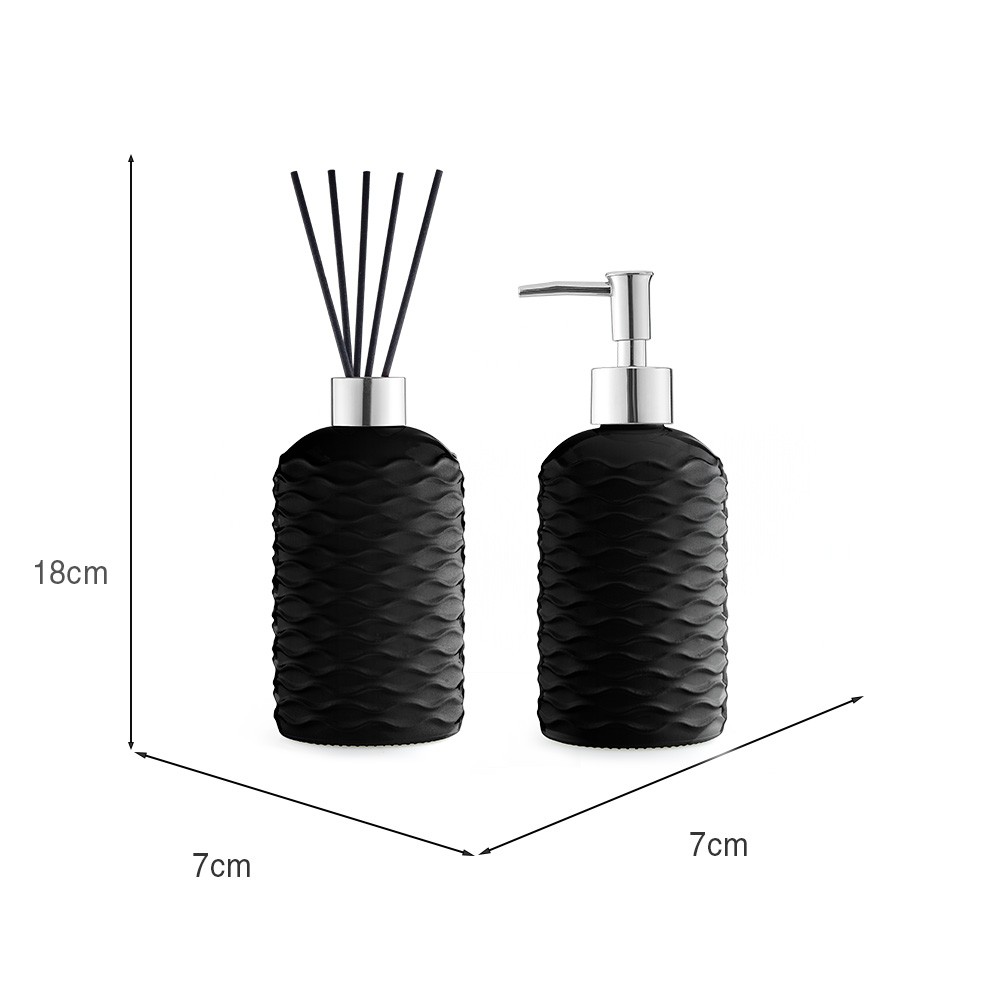 Deixar seu banheiro completo e sofisticado nunca foi tão fácil como agora, com o Kit Saboneteira e Difusor 450ml UZ7032 da UZ Utilidades. O kit perfeito para quem sabe que a beleza está nos detalhes e não abre mão de higiene e ambientes cheirosos. Com um design moderno e fáceis de manusear, o kit conta com detalhe em alto-relevo na parte externa, garantindo beleza ao ambiente. Produzido em vidro na cor preto sólido, cada recipiente comporta até 450ml. Uma dupla indispensável, a tampa do difusor e a válvula pump da saboneteira são em polipropileno (PP) metalizadas em rose, complementando o destaque das peças. Fáceis de manusear, o kit deixará seu banheiro ainda mais completo e funcional.