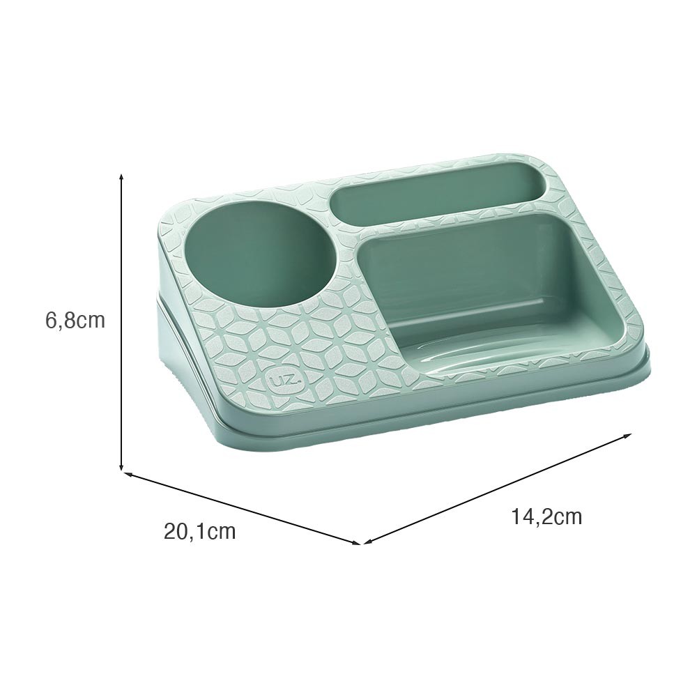 Com um design delicado e compacto, o Organizador de Pia Premium UZ é uma ótima alternativa para quem precisa de mais espaço na pia, evitando acúmulo de produtos de limpeza. Seu modelo possui três compartimentos para comportar os principais itens ao lavar a louça: detergente líquido, esponja e sabão em barra. Projetado em polipropileno (pp) e pigmentos de coloração sólida, é fácil de manusear, lavar e secar. Disponível em diversas cores lindas (veja abaixo), permite que você escolha o que melhor combina com os seus demais utensílios domésticos. Ou seja, mais praticidade e beleza no seu dia a dia.