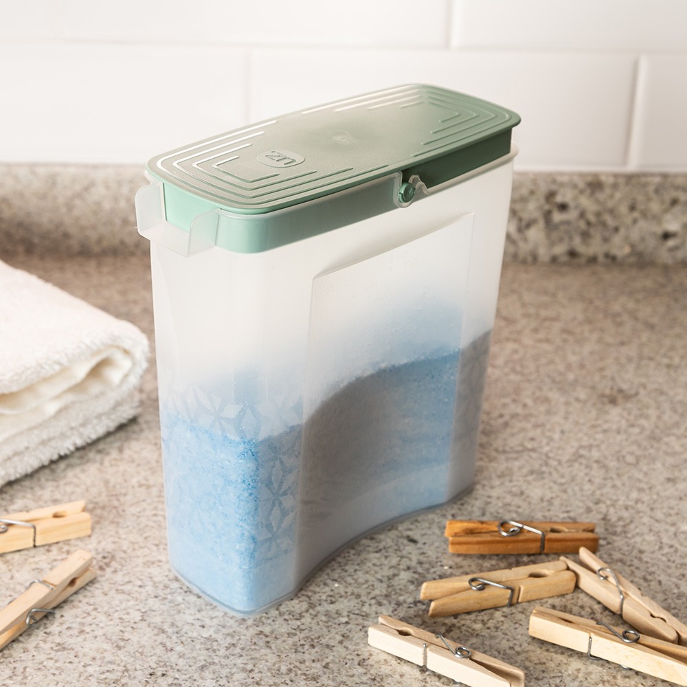 Esse nosso Porta Sabão em Pó Slim 1,65 Litros comporta a capacidade de 1,5kg.