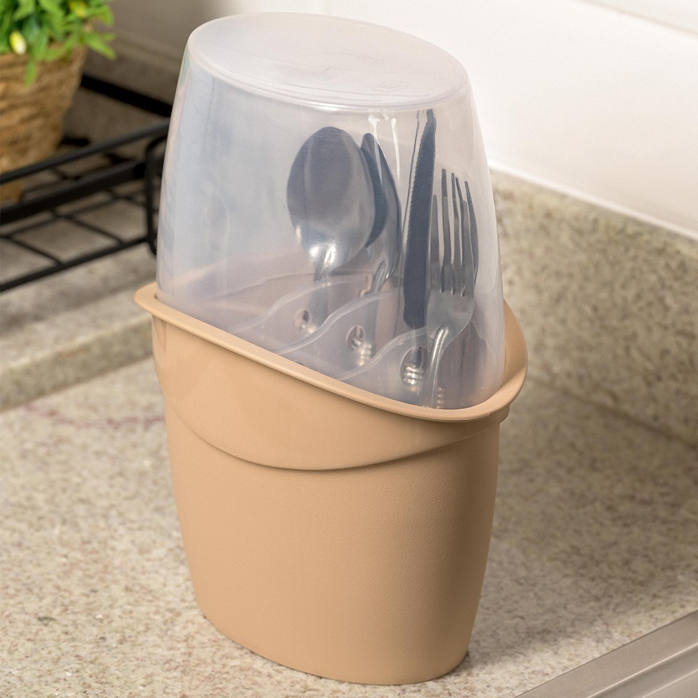 Porta Talheres Plus com Tampa Capuccino Uz Utilidades