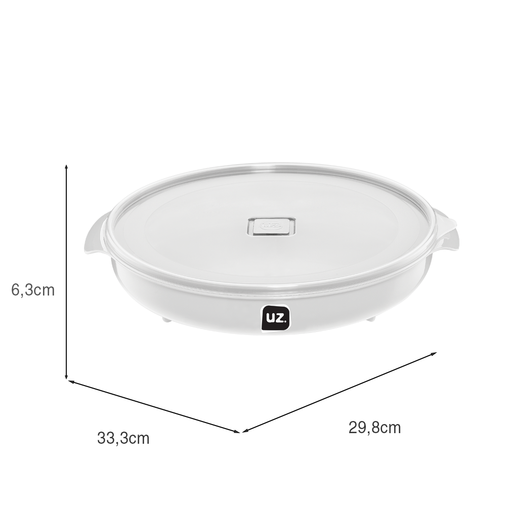 Um item indispensável em toda casa, seja para organizar a despensa, geladeira ou servir à mesa, é o Multiúso Premium 2,5L UZ210 da UZ Utilidades. Com design redondo, versátil e moderno, com 6,3cm de altura e um tamanho que comporta todos os tipos de alimentos, ideal para docinhos, sanduíches e o que você precisar, e para facilitar o transporte, ele conta com alças laterais. E produzido em polipropileno (PP), o multiúso é na cor branca, quanto a tampa é transparente, facilitando a visualização do conteúdo. E com acabamento em brilho, ele é BPA Free, garantindo o máximo de segurança para armazenar alimentos, sejam quentes ou frios, podendo ser utilizado desde o freezer até o microondas. Prático e indispensável, nunca foi tão fácil organizar sua geladeira ou despensa como agora. E para um melhor armazenamento e mais durabilidade, ele conta com ótima vedação, e a tampa, possui válvula de respiro, permitindo um fechamento homogêneo. Fácil de lavar e sevar, para mais durabilidade, durante a limpeza, evite produtos abrasivos que possam danificar o produto.