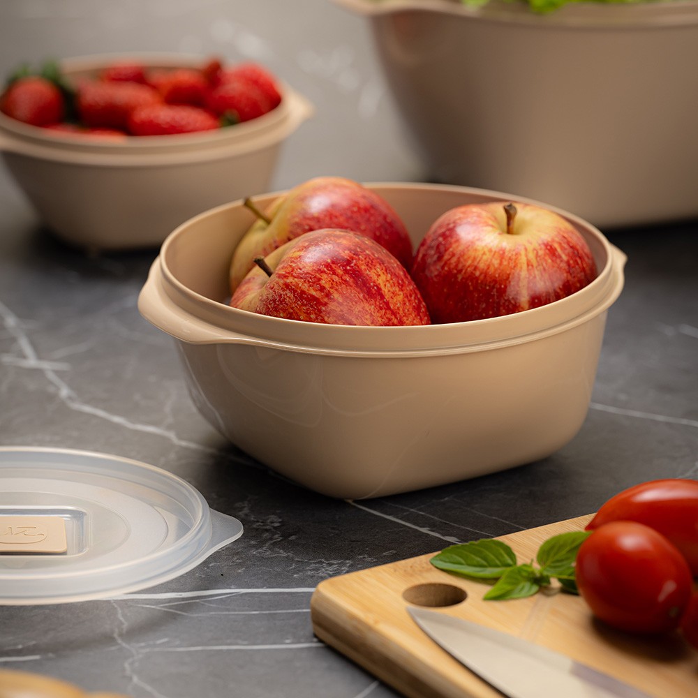 Fabricado em polipropileno, é BPA Free, garantindo segurança no contato com alimentos quentes ou frios. Possui design moderno com acabamento em brilho, alças laterais que facilitam o transporte e tampa transparente que permite visualizar o conteúdo com facilidade. A vedação eficiente, aliada à válvula de respiro, contribui para melhor conservação dos alimentos e uso seguro no micro-ondas.