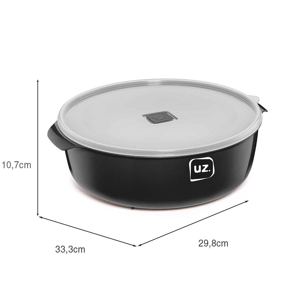 Um item indispensável em toda casa, seja para organizar a despensa, geladeira ou servir à mesa, é o Multiúso Premium 5L UZ211 da UZ Utilidades. Com design redondo, versátil e moderno, com 10,7cm de altura e um tamanho que comporta todos os tipos de alimentos, ideal para bolos, tortas, cupcakes e o que você precisar, e para facilitar o transporte, ele conta com alças laterais. E produzido em polipropileno (PP), o multiúso é na cor preta, quanto a tampa é transparente, facilitando a visualização do conteúdo. E com acabamento em brilho, ele é BPA Free, garantindo o máximo de segurança para armazenar alimentos, sejam quentes ou frios, podendo inclusivo ir ao freezer. Prático e indispensável, nunca foi tão fácil organizar sua geladeira ou despensa como agora. E para um melhor armazenamento e mais durabilidade, ele conta com ótima vedação, e a tampa, possui válvula de respiro, permitindo um fechamento homogêneo. Fácil de lavar e sevar, para mais durabilidade, durante a limpeza, evite produtos abrasivos que possam danificar o produto.
