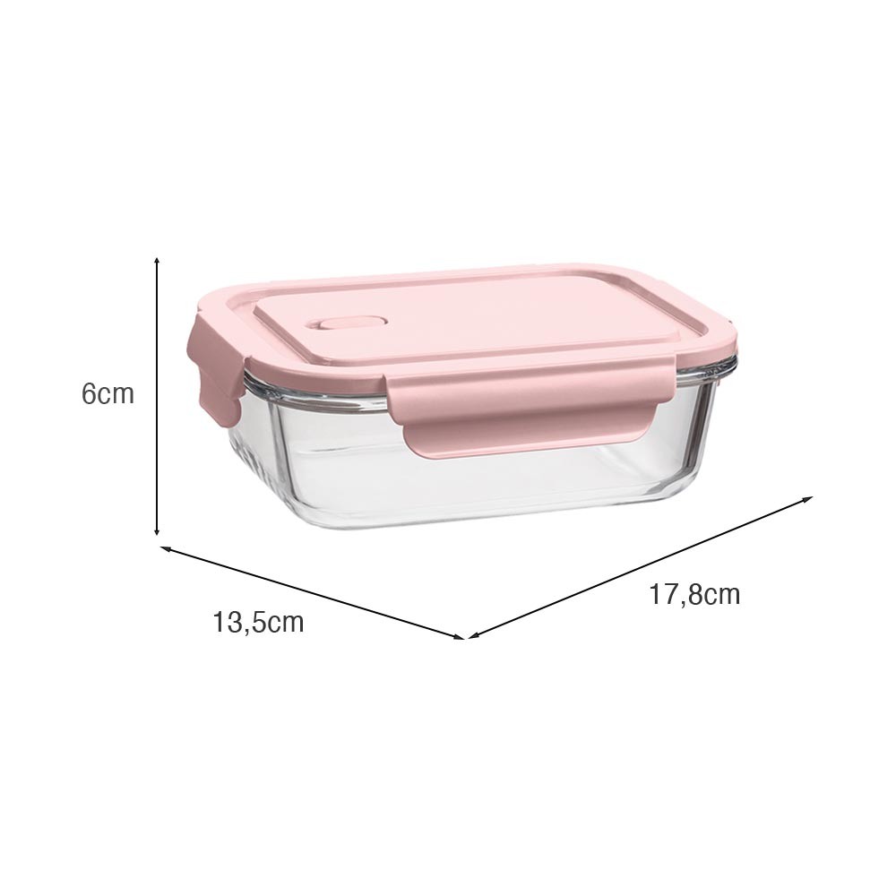 Com design moderno e indispensável para o dia a dia, o Pote de Vidro Borossilicato 680ml UZ7045 da UZ Utilidades é o melhor amigo de quem ama organização e não abre mão das marmitas da semana. Retangular, com medidas de 6cm de altura, 13,5cm de largura e 17,8cm de profundidade, ele é produzido em vidro borossilicato, que garante maior resistência e praticidade para o seu dia. A tampa, em polipropileno (PP) na cor rosa, possui fechamento hermético em click, e com silicone nas bordas, proporciona uma vedação perfeita. E o detalhe da válvula de respiro garante toda a sua qualidade. O pote também é refratário, podendo ser utilizado como assadeira no forno ou airfryer. Fácil de transportar, é o utensílio perfeito para organizar desde a geladeira até as marmitas da semana com qualidade e praticidade. Fácil de lavar e secar, para mais durabilidade, durante a limpeza, evite produtos abrasivos que possam danificar o produto.
